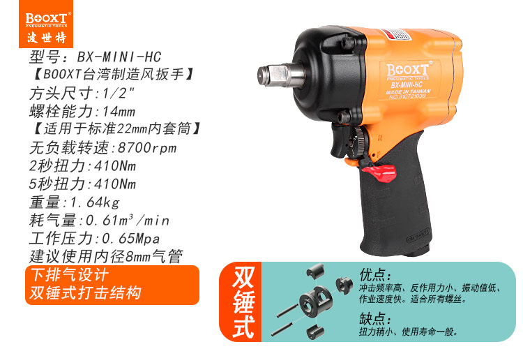 東莞市強(qiáng)勁五金工具有限公司提供臺(tái)灣BOOXT波世特品牌氣動(dòng)工具,輕型氣動(dòng)扳手BX-MINI-HC廠家直銷,首件享特價(jià)。咨詢熱線:4008301980