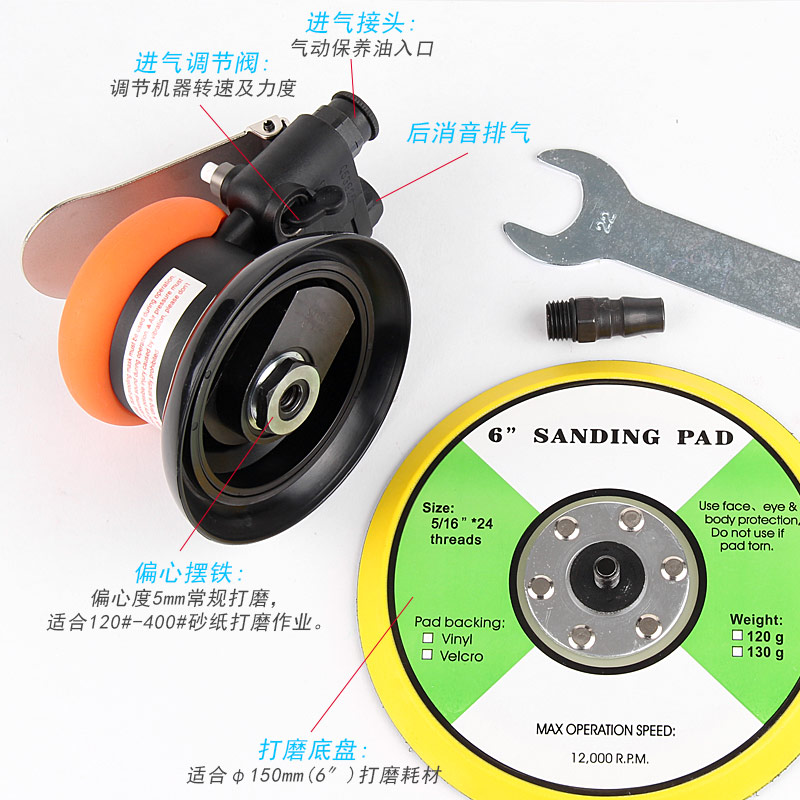 --粗磨偏心度幅度為9.5mm,扭力大,切削能力更大,適合重力打磨。工件一般幅面較大,要求打磨速度快,粗糙的打磨表面,如:玻璃鋼,UV,原子灰等材質(zhì)比較硬的工件,所用砂紙規(guī)格120#以下;