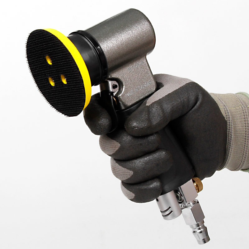 1.帶偏心式,裝砂紙打磨出來的效果是“霧”狀,帶細小亂絲的小紋路,適合后工藝需要做噴砂、烤漆,增加附著力。(標配一般為3mm偏擺,可選配1.5mm,0.75mm偏擺度)