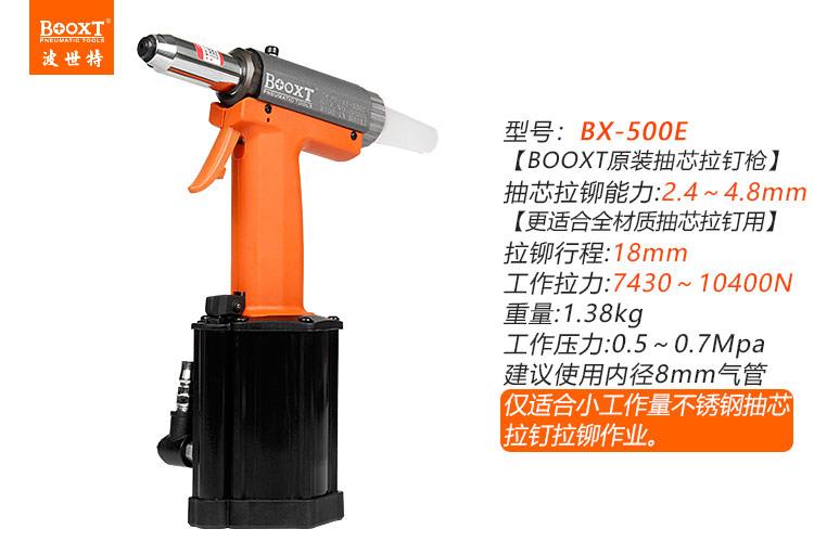 東莞市強(qiáng)勁五金工具有限公司提供臺灣BOOXT波世特品牌氣動(dòng)工具,氣動(dòng)拉釘槍BX-500E廠家直銷,首件享特價(jià)。咨詢熱線:4008301980
