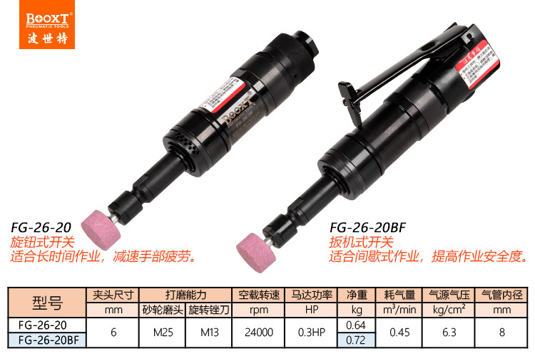 東莞市強(qiáng)勁五金工具有限公司提供臺灣BOOXT波世特品牌氣動工具,氣動打磨機(jī)FG-26-20BF廠家直銷,首件享特價。咨詢熱線:4008301980
