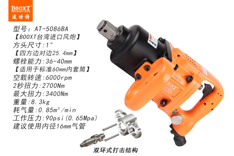 東莞市強(qiáng)勁五金工具有限公司提供臺(tái)灣BOOXT波世特品牌氣動(dòng)工具,進(jìn)口風(fēng)炮AT-5086BA廠家直銷,首件享特價(jià)。咨詢熱線:4008301980
