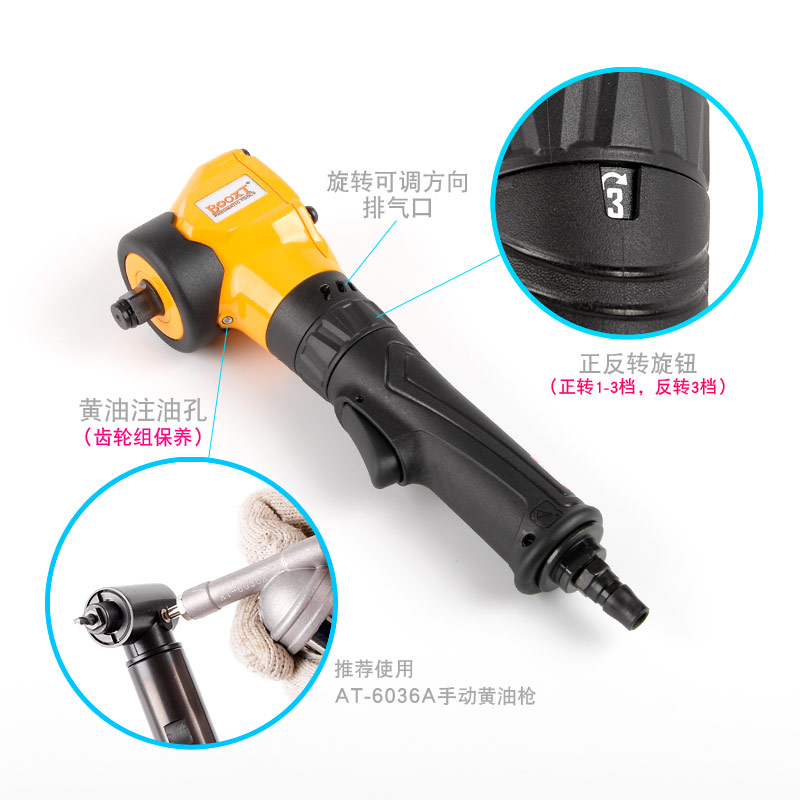 氣動扳手彎頭特點(diǎn):(重力壓鑄外殼,強(qiáng)度更高不變形,提高耐用度)