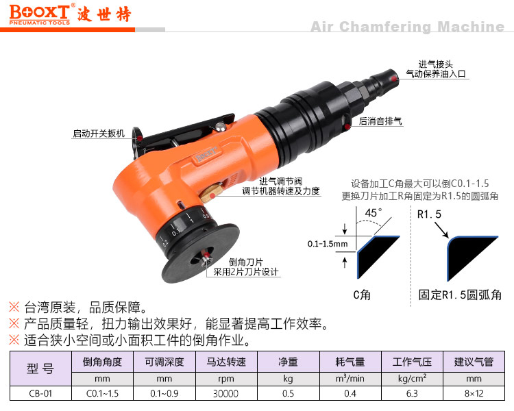 東莞市強勁五金工具有限公司提供臺灣BOOXT波世特品牌氣動工具,迷你氣動倒角機CB-01廠家直銷,首件享特價。咨詢熱線:4008301980