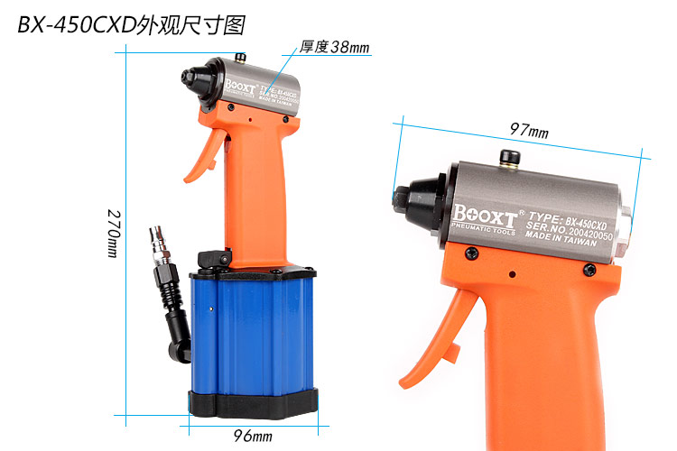 • 產(chǎn)品型號: 超短氣動拉釘槍BX-450CXD