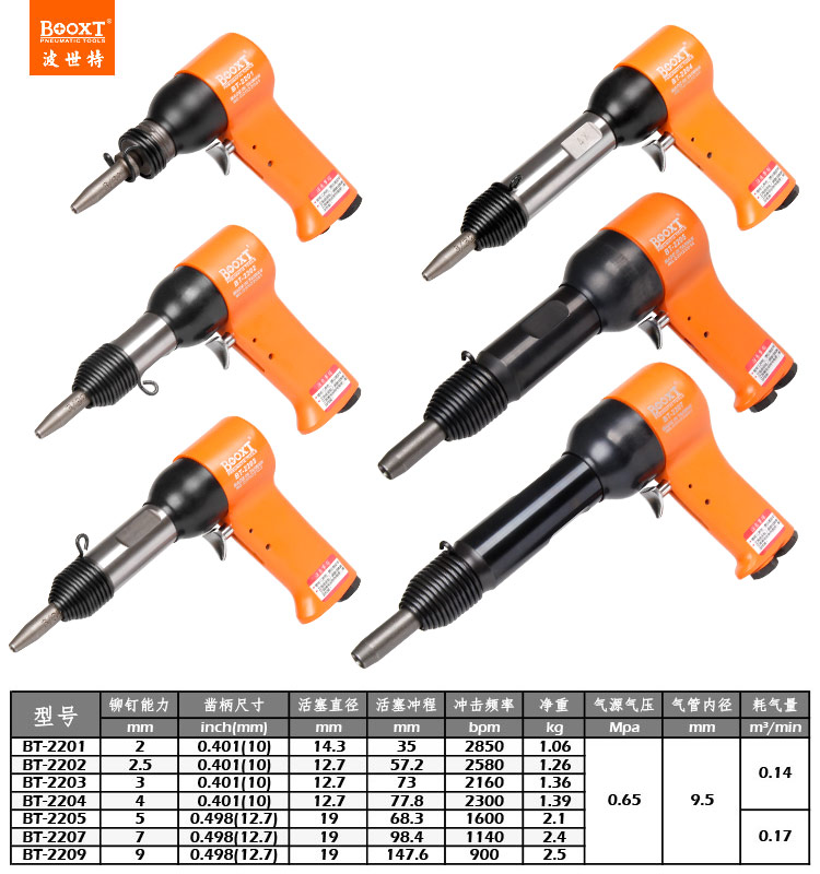東莞市強勁五金工具有限公司提供臺灣BOOXT波世特品牌氣動工具,氣動鉚釘錘BT-2207廠家直銷,首件享特價。咨詢熱線:4008301980