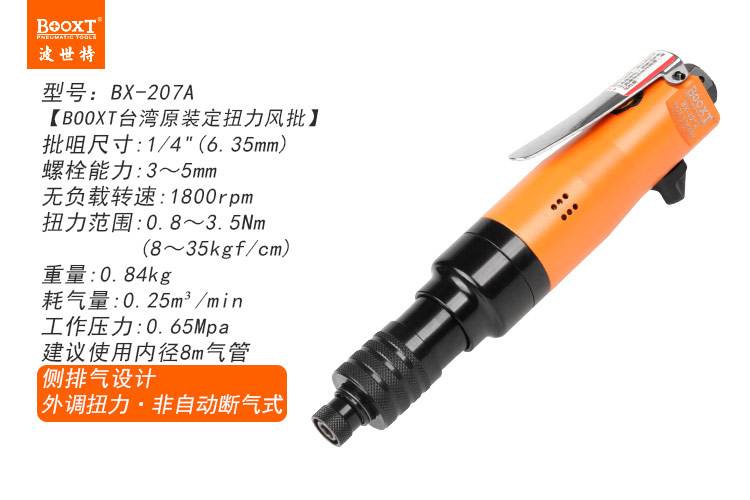 東莞強(qiáng)勁五金工具有限公司提供臺(tái)灣BOOXT波世特氣動(dòng)工具,定扭力氣動(dòng)螺絲刀BX-207A廠家直銷,首件享特價(jià)。咨詢熱線:4008301980