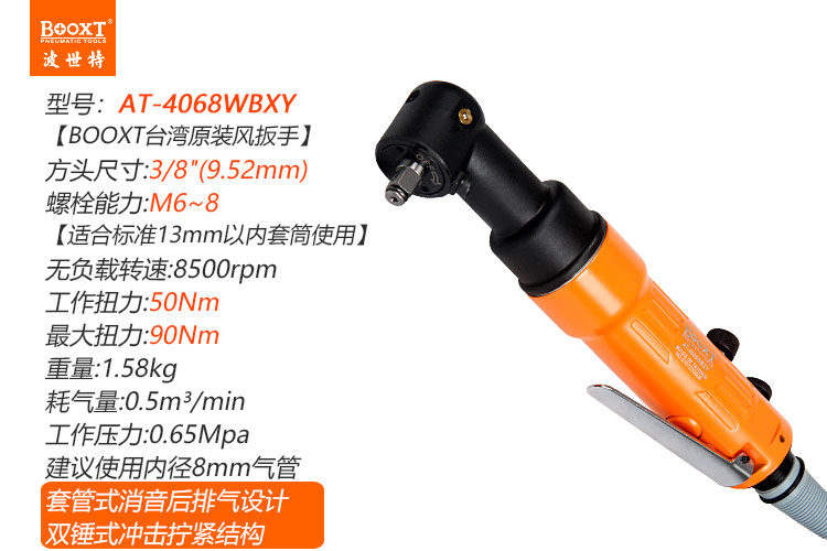 東莞市強勁五金工具有限公司提供臺灣BOOXT波世特品牌氣動工具,彎頭氣動扳手AT-4068WBXY廠家直銷,首件享特價。咨詢熱線:4008301980