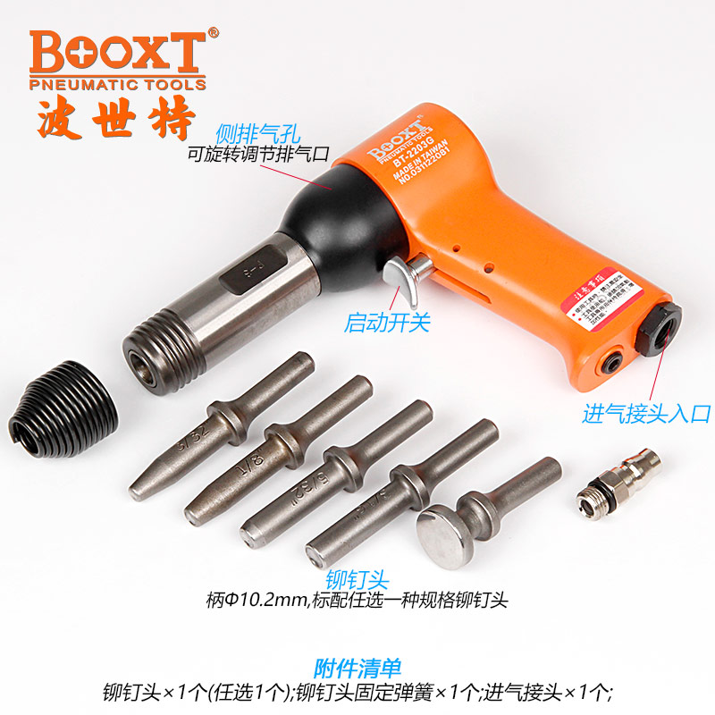 東莞市強(qiáng)勁五金工具有限公司提供臺(tái)灣BOOXT波世特品牌氣動(dòng)工具,氣動(dòng)鉚釘錘BT-2203G廠家直銷(xiāo),首件享特價(jià)。咨詢(xún)熱線:4008301980
