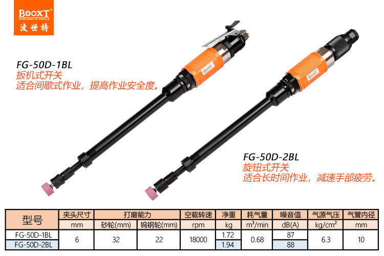 東莞市強(qiáng)勁五金工具有限公司提供臺灣BOOXT波世特品牌氣動工具,加長氣動風(fēng)磨機(jī)FG-50D-1BL廠家直銷,首件享特價。咨詢熱線:4008301980