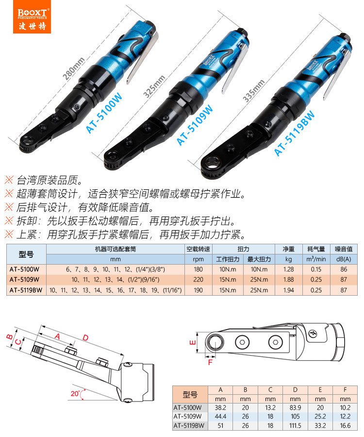東莞市強勁五金工具有限公司提供臺灣BOOXT波世特品牌氣動工具,氣動穿孔棘輪扳手AT-5100W廠家直銷,首件享特價。咨詢熱線:4008301980