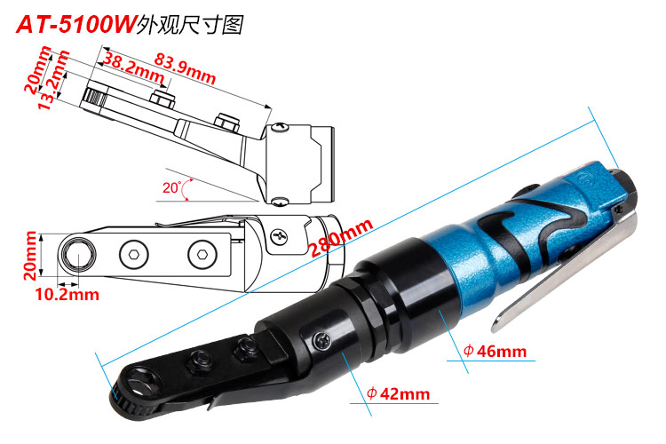 氣動穿孔棘輪扳手特點:(重力壓鑄外殼,強度更高不變形,提高耐用度)