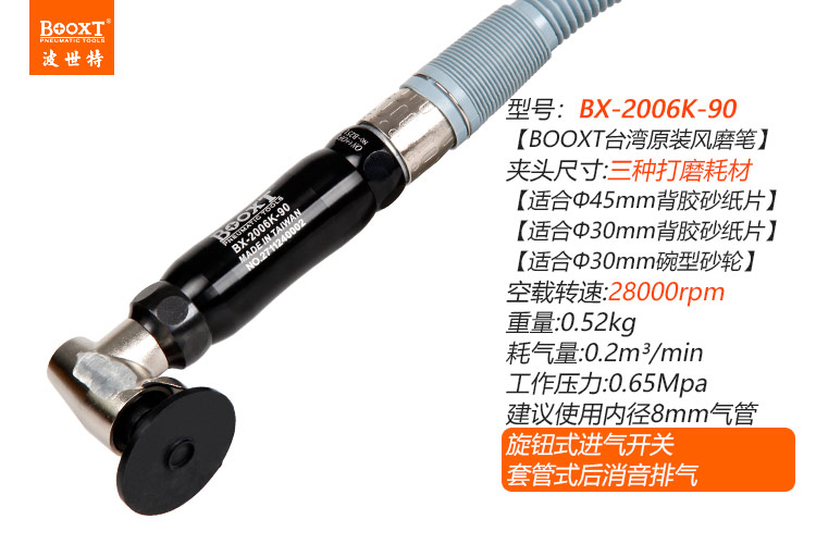 東莞市強勁五金工具有限公司提供臺灣BOOXT波世特品牌氣動工具,彎頭氣動風(fēng)磨筆BX-2006K-90廠家直銷,首件享特價。咨詢熱線:4008301980