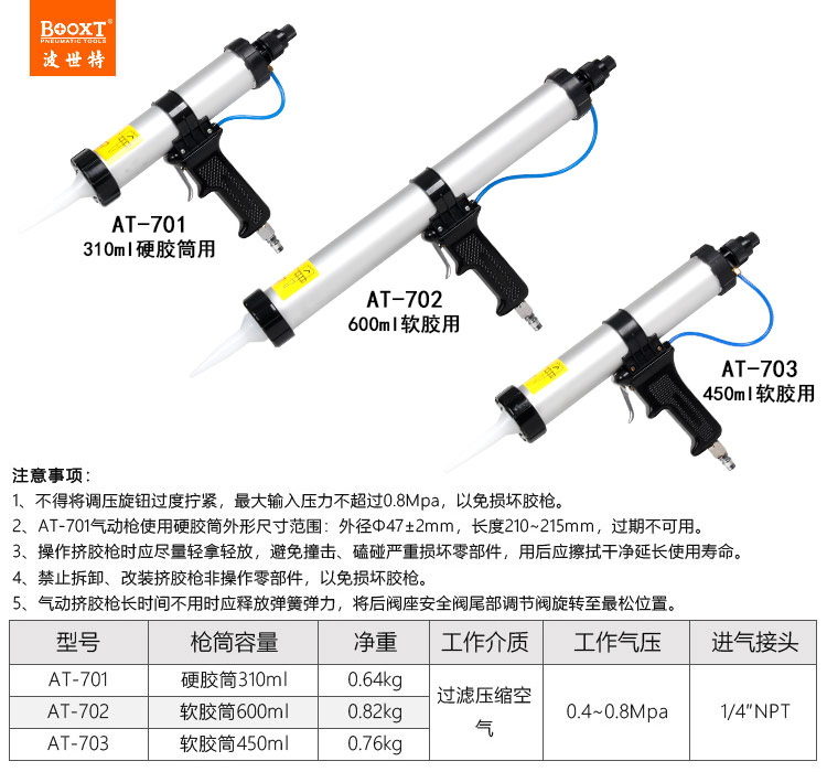 東莞市強(qiáng)勁五金工具有限公司提供臺(tái)灣BOOXT波世特品牌氣動(dòng)工具,氣動(dòng)玻璃膠槍AT-701廠家直銷,臺(tái)灣制造,首件享特價(jià)。咨詢熱線:4008301980