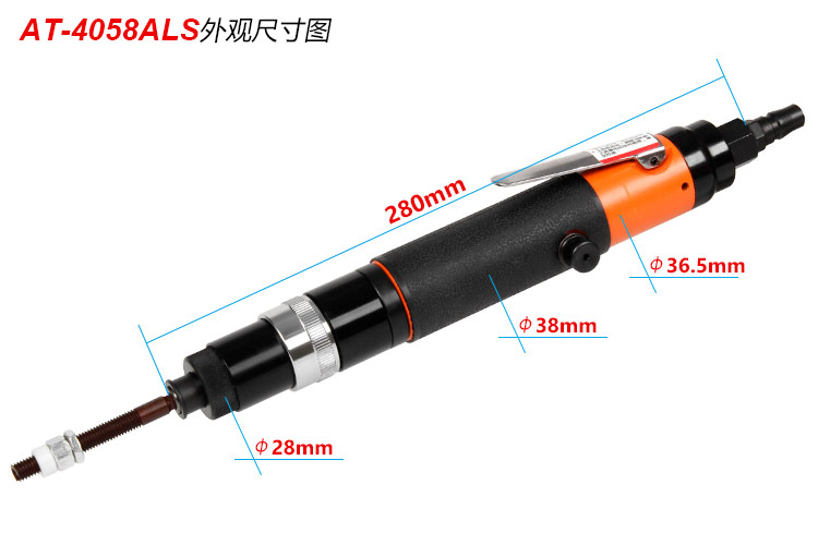• 產(chǎn)品參數(shù): 螺絲規(guī)格:M4-8 夾頭尺寸:1/4" 空載轉(zhuǎn)速:1450rpm 峰值扭力:4Nm 全 長:280mm 重 量:0.9kg 耗 氣 量:0.25m3/min 噪 音 值:80db(A) 【專業(yè)型】
