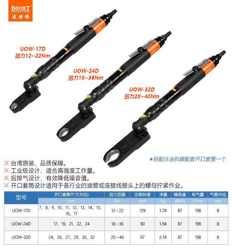 東莞市強勁五金工具有限公司提供臺灣BOOXT波世特品牌氣動工具,大扭矩氣動開口扳手UOW-24D廠家直銷,首件享特價。咨詢熱線:4008301980
