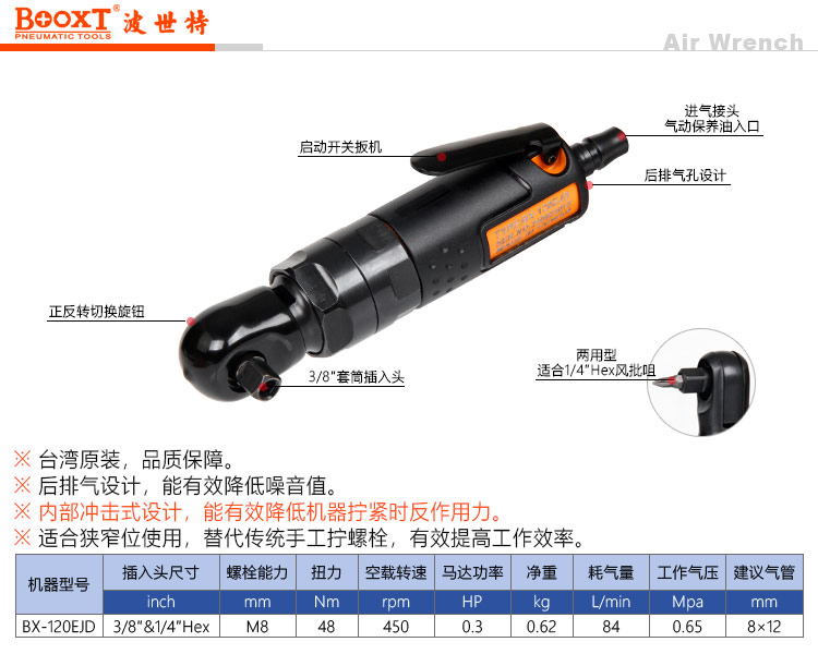 東莞市強(qiáng)勁五金工具有限公司提供臺(tái)灣BOOXT波世特品牌氣動(dòng)工具,兩用氣動(dòng)棘輪扳手BX-120EJD廠家直銷,首件享特價(jià)。咨詢熱線:4008301980