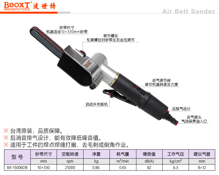 東莞市強(qiáng)勁五金工具有限公司提供臺灣BOOXT波世特品牌氣動工具,BX-15006DB小型氣動砂帶機(jī)廠家直銷,首件享特價。服務(wù)熱線:4008301980