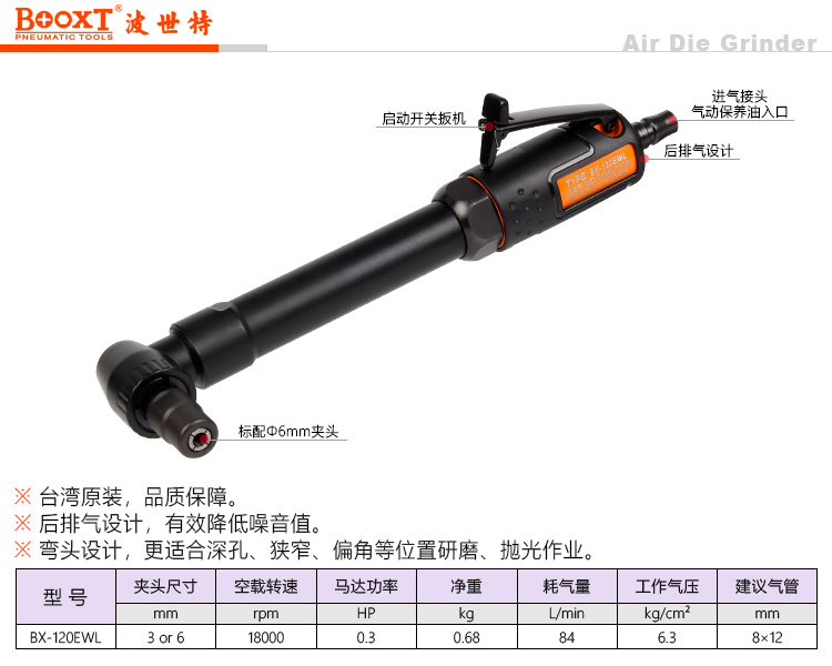 東莞市強(qiáng)勁五金工具有限公司提供臺(tái)灣BOOXT波世特品牌氣動(dòng)工具,加長彎頭氣動(dòng)打磨機(jī)BX-120EWL廠家直銷,首件享特價(jià)。咨詢熱線:4008301980
