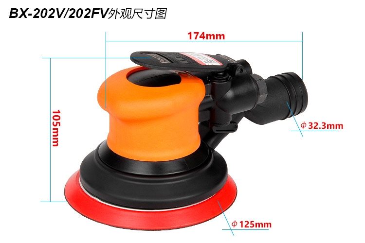 • 產(chǎn)品參數(shù): 底盤尺寸:125mm 【5寸】 空載轉(zhuǎn)速:11000rpm 偏擺直徑:2.5mm 重 量:0.76kg 耗 氣 量:0.57m3/min 【中央吸塵/細磨】