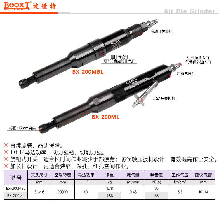 東莞市強(qiáng)勁五金工具有限公司提供臺灣BOOXT波世特品牌氣動工具,加長氣動直磨機(jī)BX-200MBL廠家直銷,首件享特價。咨詢熱線:4008301980