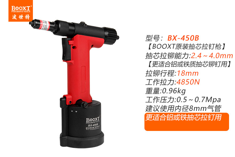 東莞市強勁五金工具有限公司提供臺灣BOOXT波世特品牌氣動工具,風動拉釘槍BX-450B廠家直銷,首件享特價。咨詢熱線:4008301980