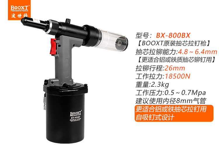 東莞市強(qiáng)勁五金工具有限公司提供臺灣BOOXT波世特品牌氣動工具,自吸式氣動拉釘槍BX-800BX廠家直銷,首件享特價(jià)。咨詢熱線:4008301980